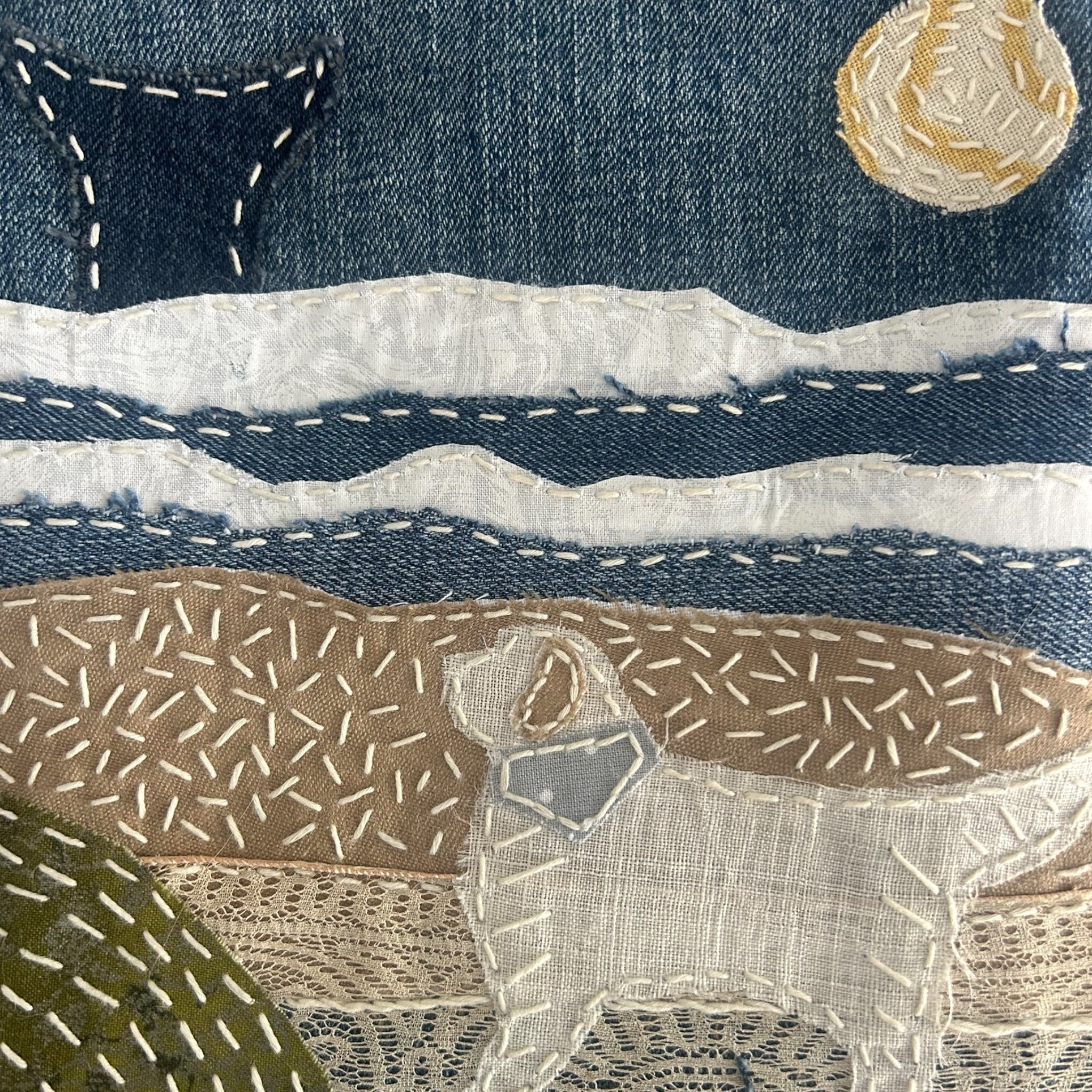 Created using slow-stitch embroidery and hand appliqué techniques.