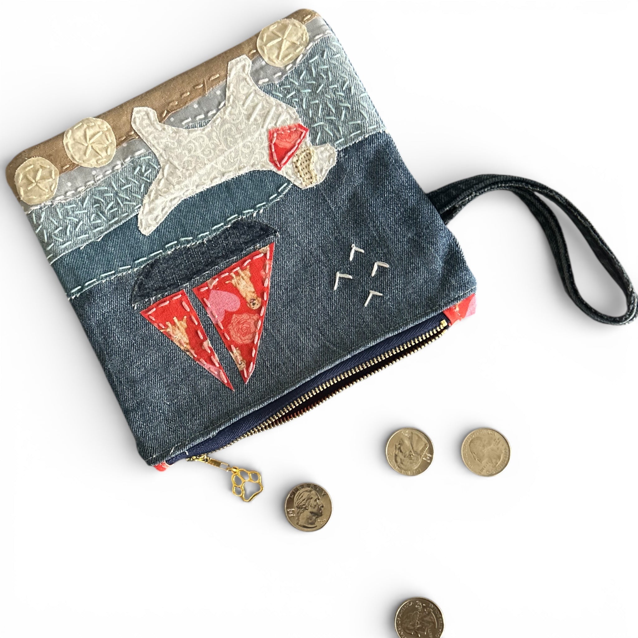 7” x 7” pouch crafted from reclaimed denim plus recycled and vintage textiles