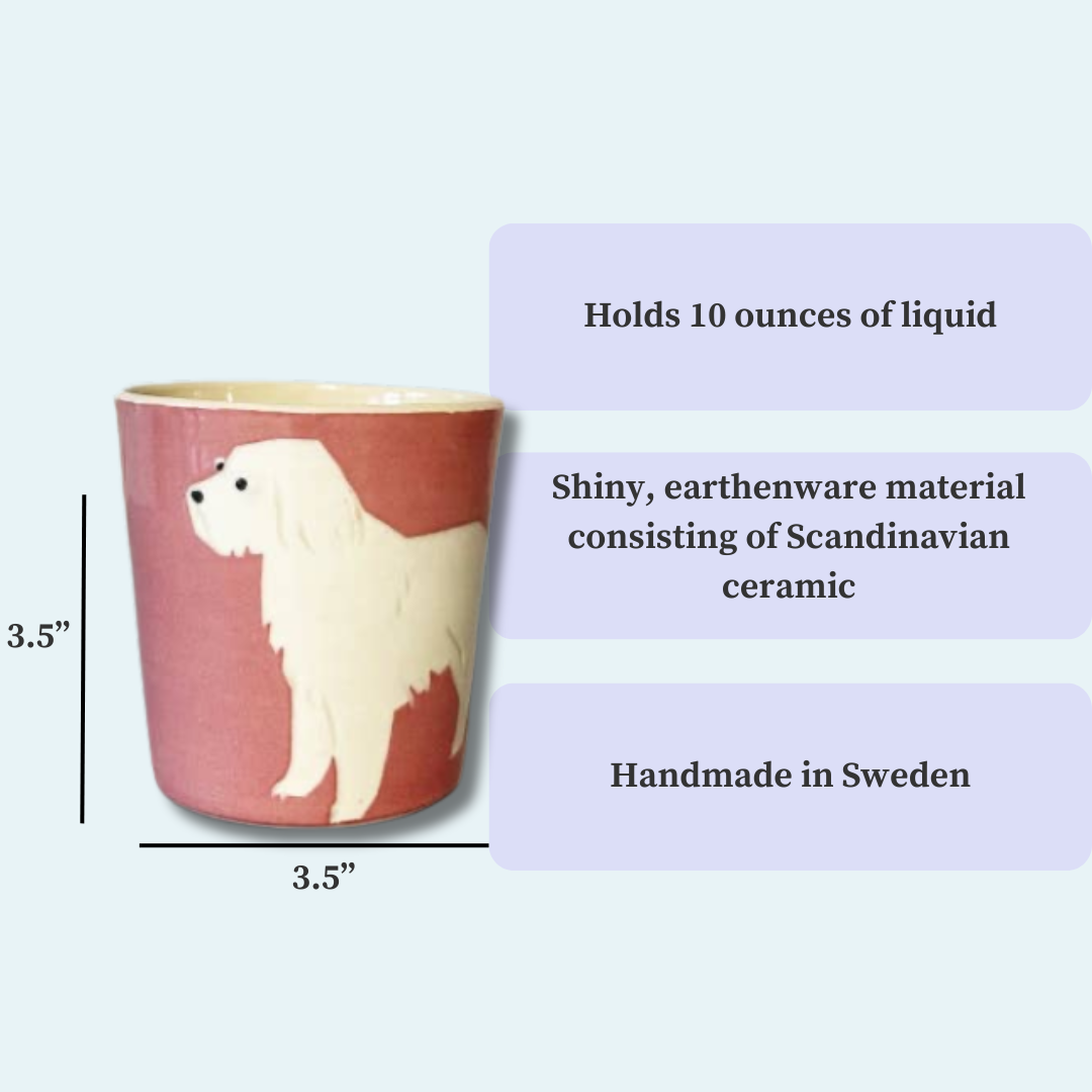 Celebrate your love for Golden Retrievers with this beautifully handmade earthenware cup, thoughtfully handcrafted in Sweden. Featuring a minimalist golden retriever illustration against a calming light cream background, this cup blends Scandinavian design with everyday functionality.