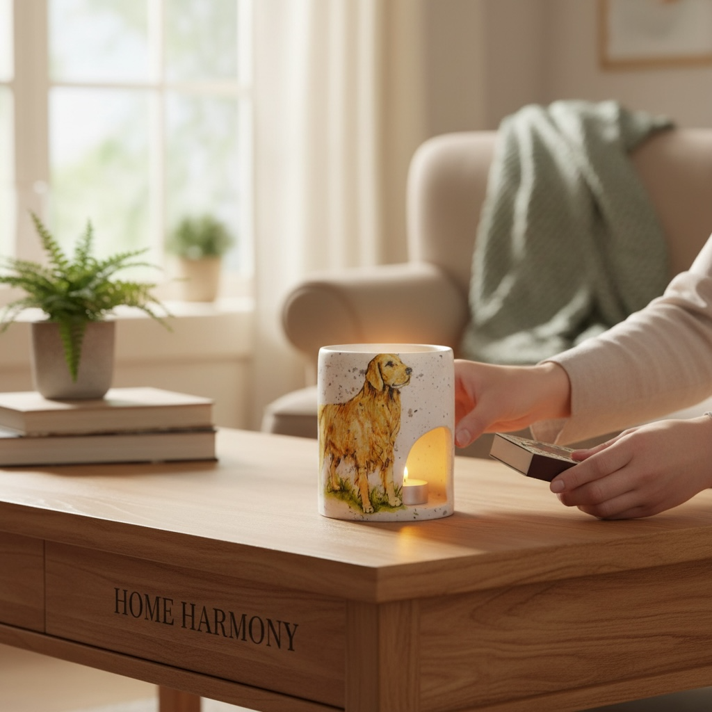Transform any room into a cozy, dog-inspired sanctuary with this elegant ceramic wax melt burner featuring a Golden Retriever silhouette. Whether you’re unwinding after a long day, hosting guests, or gifting something heartfelt to a fellow dog lover, this burner adds a touch of warmth and personality to your space.