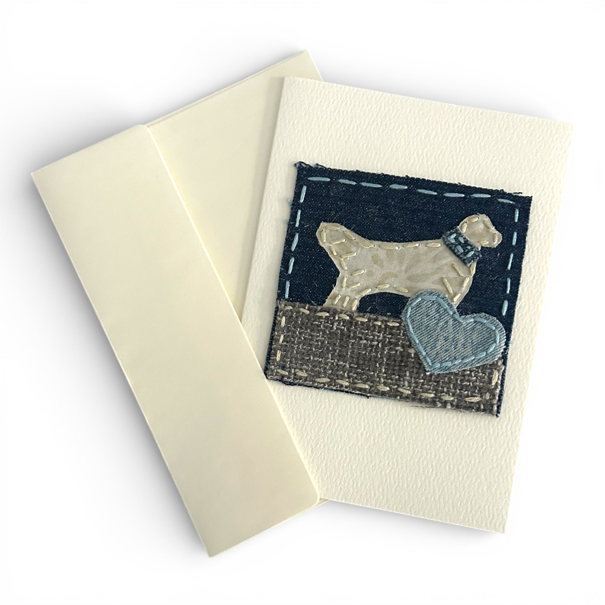 Brighten someone’s day the eco-friendly way with this handmade greeting card- featuring a beautifully embroidered Golden Retriever motif stitched on upcycled denim (and a mix of other recycled and vintage fabrics). This isn’t just a card: it’s a little piece of art, crafted with love, care, and sustainability at its core.